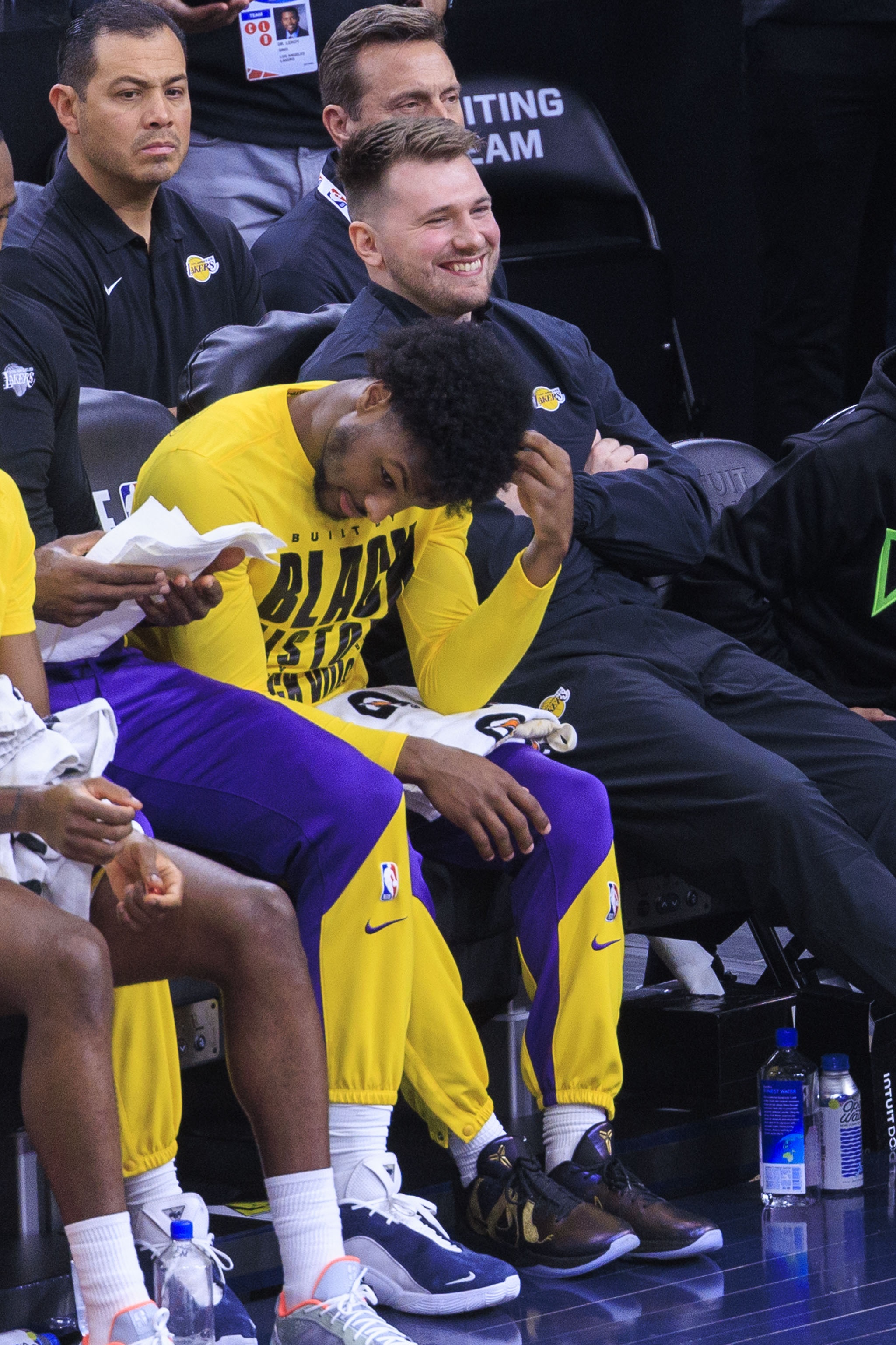 首先,隨著詹姆斯的缺陣,湖人在賽季初每晚就空出了30到35分鐘的上場時間。他們休賽期引進(jìn)的后衛(wèi)馬庫斯-斯瑪特目前正受跟腱炎的困擾,所以賽季開始時他能打多久還是個未知數(shù)。為了騰出空間引進(jìn)他,湖人裁掉了上賽季的輪換后衛(wèi)喬丹-古德溫。此外,馬克西-克萊伯也正受股四頭肌傷病的困擾,而從健康角度來看,他也不是一個能被完全依賴的球員。換句話說,賽季初期似乎有可供分配的上場時間。這里的諷刺之處在于,勒布朗-詹姆斯的受傷,可能會為他兒子布朗尼的上場打開大門。布朗尼顯然比他父親身材小很多。他們打不同的位置。但湖人的陣容位置相對靈活。畢竟,他們的兩位主要持球手是詹姆斯和盧卡-東契奇,兩人都是前鋒身材。在勒布朗、斯瑪特和克萊伯都缺陣的情況下,有八名球員幾乎肯定會出場:東契奇、奧斯汀-里夫斯、八村塁、賈里德-范德比爾特、加布-文森特、德安德烈-艾頓、杰克-拉拉維亞和賈克森-海斯。