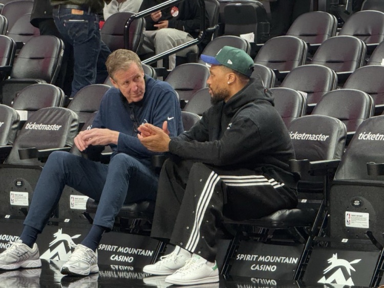 曾共事9年!勇士助教斯托茨和昔日愛徒利拉德賽前場邊聊天