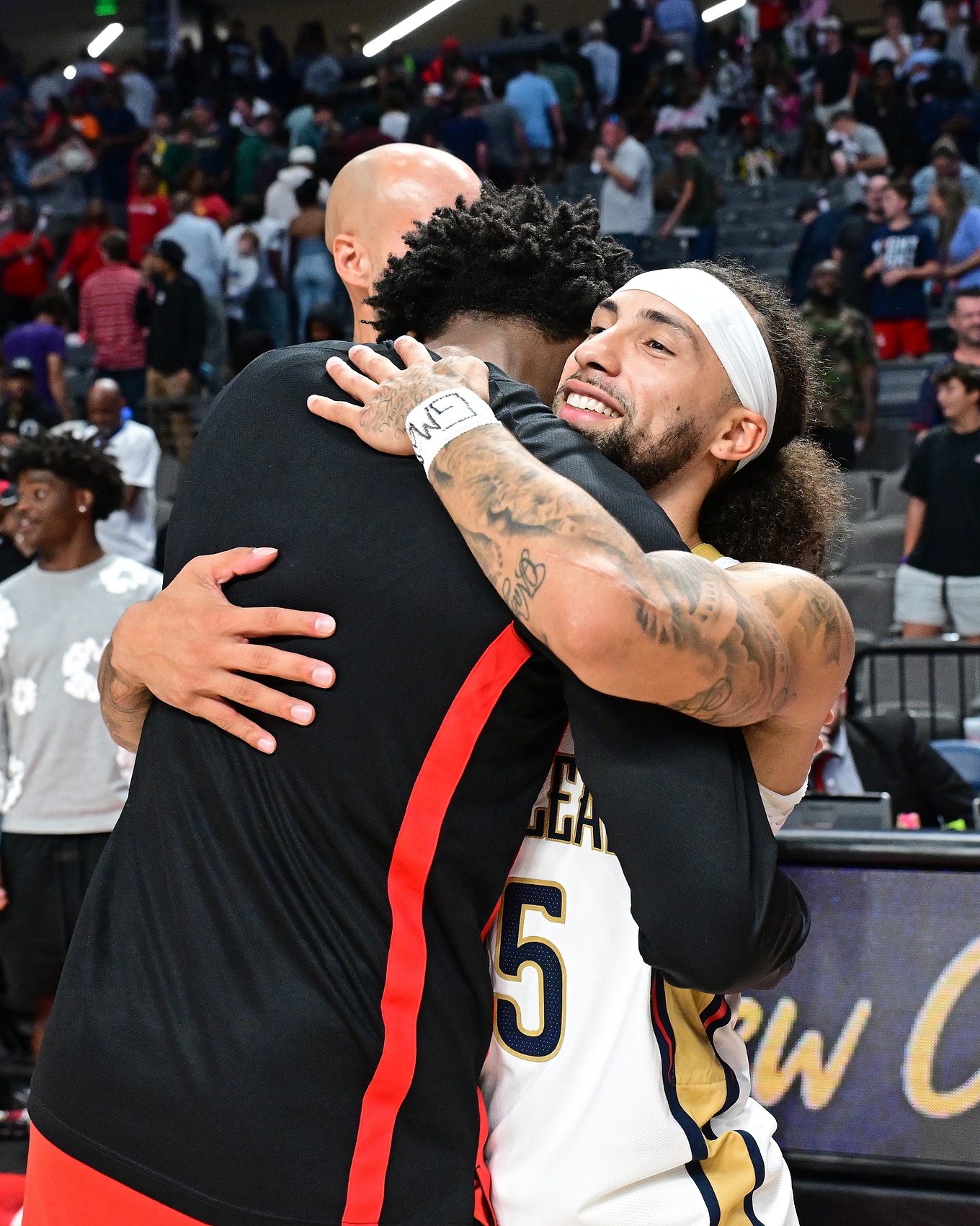 在本場比賽中,阿門-湯普森和阿爾瓦拉多因為卡位問題爆發(fā)了沖突,不過,他們兩人在賽后擁抱,握手言和。