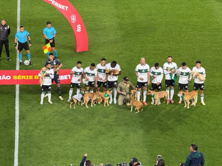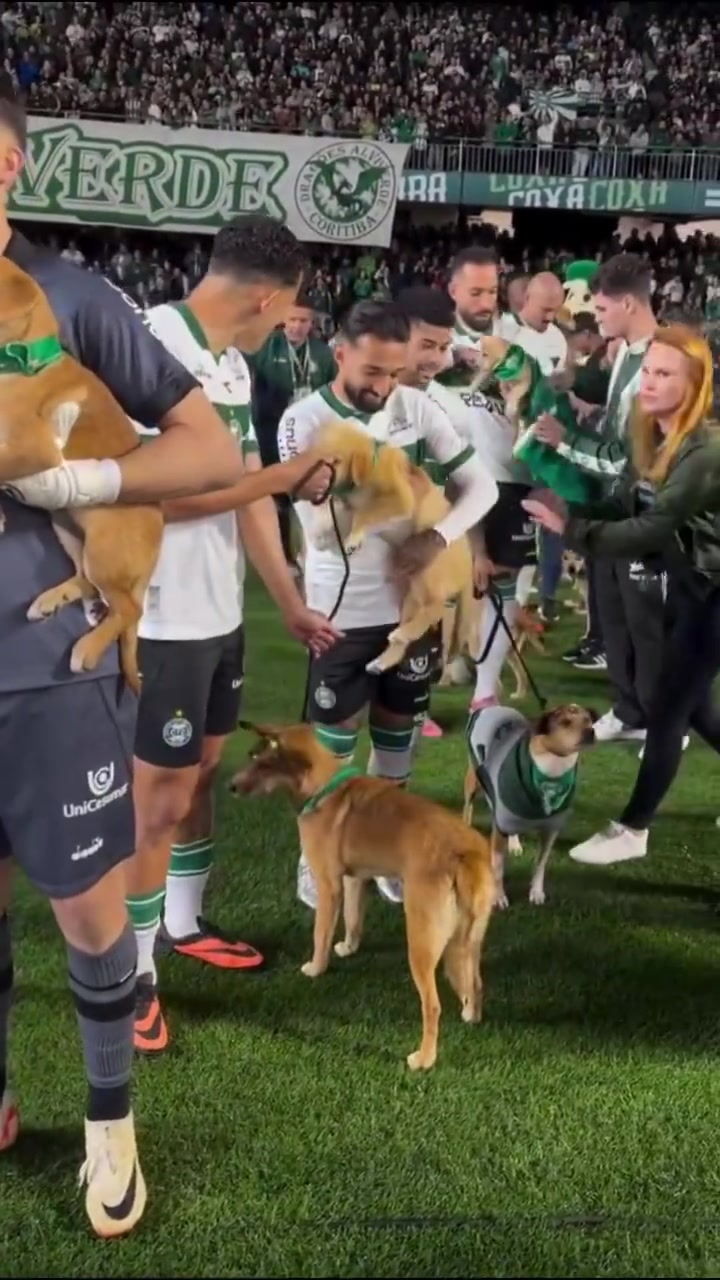 據(jù)巴西環(huán)球體育報(bào)道,為慶祝“金色九月”這一致力于動(dòng)物權(quán)利的活動(dòng),科里蒂巴與當(dāng)?shù)貝坌慕M織合作,每名球員在該組織救助的11只金色小狗的陪伴下踏上球場(chǎng),這11只小狗都可供領(lǐng)養(yǎng)。