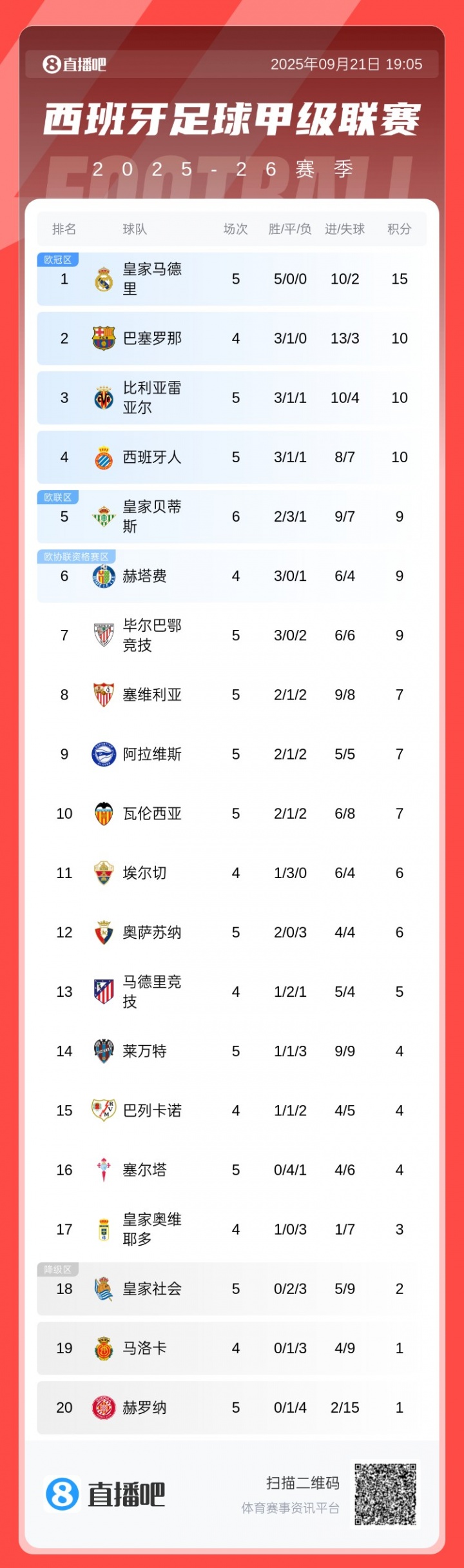 09月21日訊 西甲第5輪,赫羅納主場(chǎng)0-4慘敗于萊萬(wàn)特,繼續(xù)穩(wěn)居西甲墊底位置。本賽季西甲前5輪,赫羅納僅取得1平4負(fù),排名西甲倒數(shù)第一。