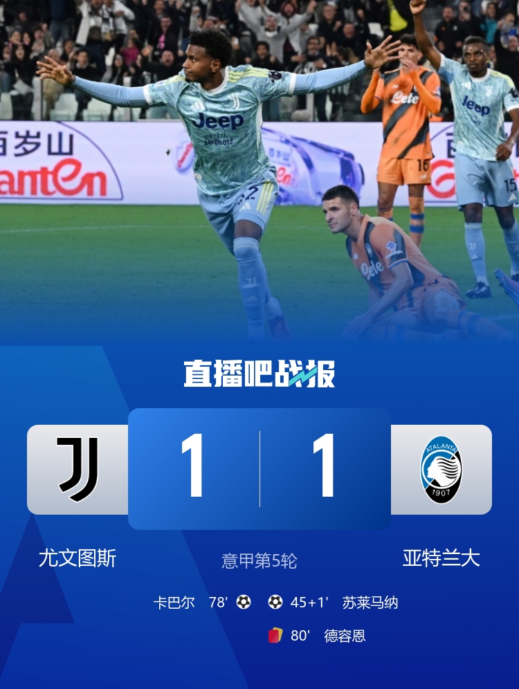9月28日訊 北京時間9月28日凌晨0時整,2025-26賽季意甲第5輪在安聯(lián)競技場展開角逐,尤文圖斯主場迎戰(zhàn)亞特蘭大。上半場卡盧盧中柱,阿季奇被斷致丟球,下半場卡巴爾替補(bǔ)扳平,麥肯尼造紅牌。最終尤文圖斯主場1-1戰(zhàn)平十人亞特蘭大,尤文聯(lián)賽開局5輪不敗+兩連平仍居第2,亞特蘭大升至第3。
