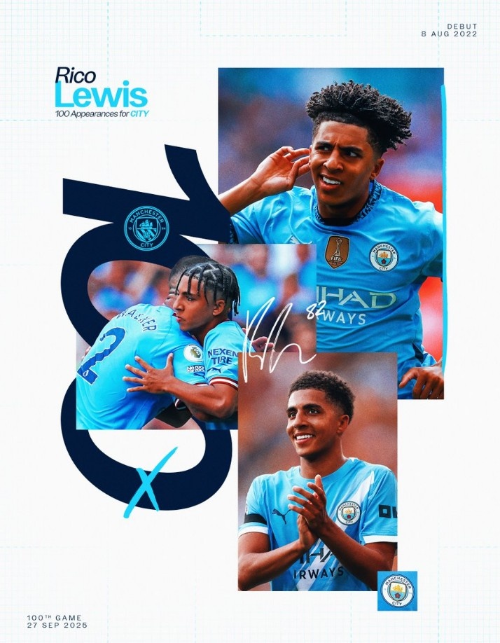 在比賽第83分鐘,劉易斯替補出場,這是他代表曼城參加的第100場正式比賽。劉易斯因此成為少數(shù)能夠在21歲之前就在一線隊出場達到100場的本隊青訓(xùn)球員,在英超時代,曼城過去只有理查茲和福登這兩名青訓(xùn)球員曾經(jīng)做到過。