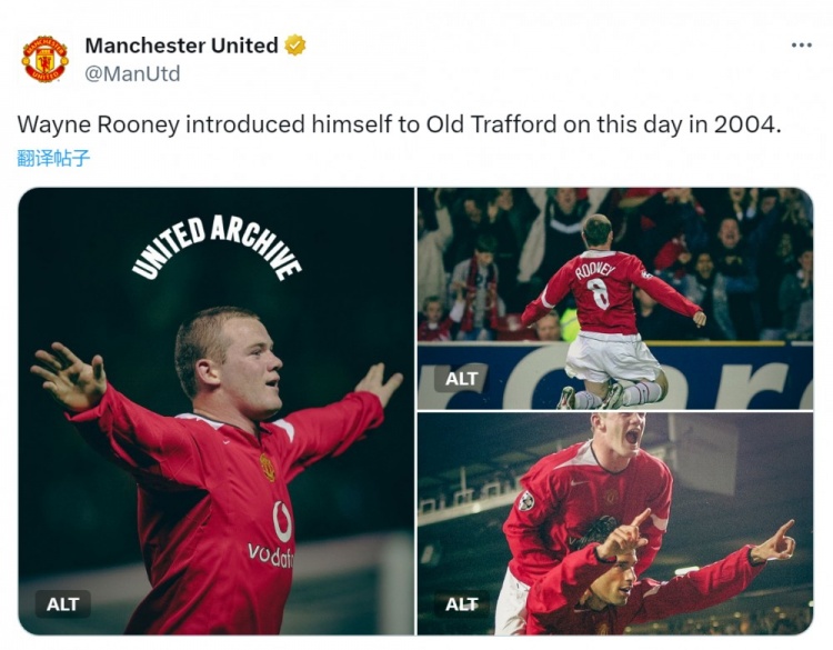曼聯(lián)官方社媒曬出魯尼首秀的照片,回顧那令人難忘的一天。