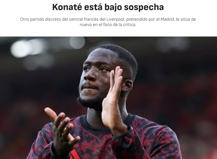 《阿斯報》表示,這并非科納特第一次因其表現(xiàn)而受到批評,尤其是在他可能轉(zhuǎn)會皇馬的傳聞愈演愈烈之后。他與利物浦的合同即將到期并且仍未續(xù)約,隨著他離隊的臨近,他的表現(xiàn)似乎正在下滑。