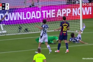 下半場(chǎng)傷停補(bǔ)時(shí)5分鐘,全場(chǎng)比賽結(jié)束,最終巴薩2-1皇家社會(huì)。