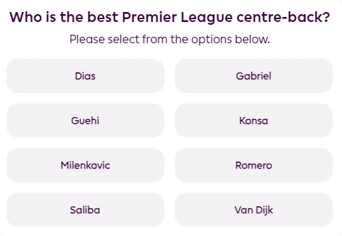 英超官方也借這個機(jī)會發(fā)布了一則投票:誰是英超目前最好的中后衛(wèi)?