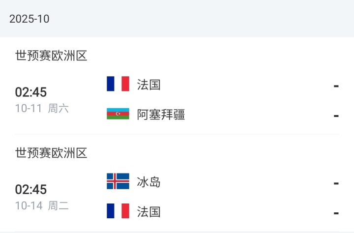 法國(guó)隊(duì)10月份賽程↓