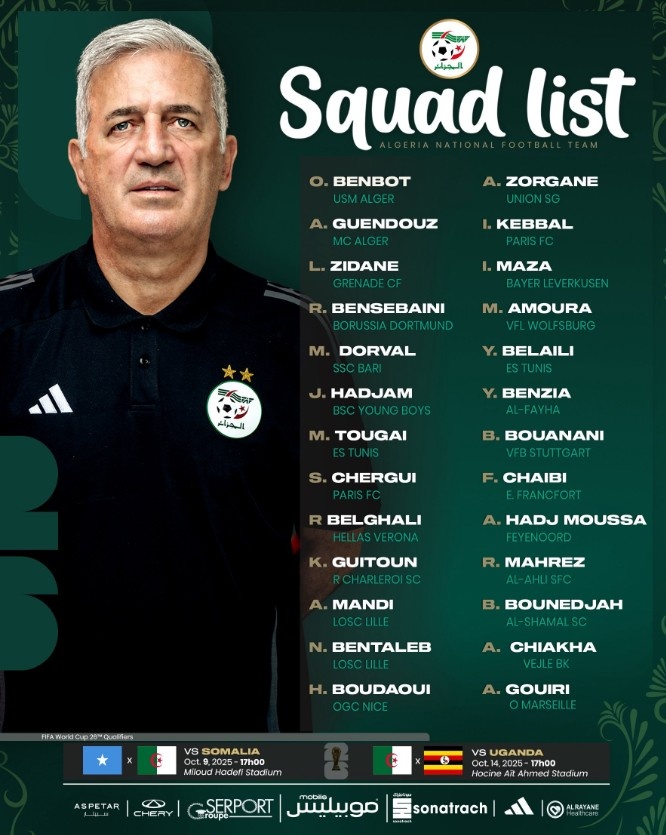 10月2日訊 為了迎接即將到來的對陣索馬里和烏干達的比賽,阿爾及利亞公布了新一期的國家隊大名單,馬赫雷斯、本塞拜尼領(lǐng)銜,齊達內(nèi)之子盧卡入選。
