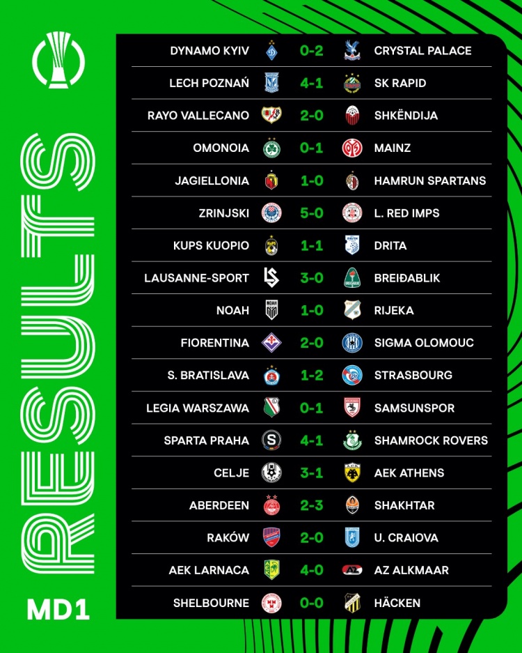 歐協(xié)聯(lián)首輪比賽結(jié)果: