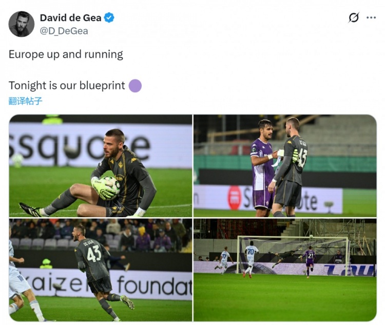 德赫亞社媒曬出比賽照片,并寫(xiě)道:“歐戰(zhàn)征程開(kāi)啟,今晚的表現(xiàn)就是我們的藍(lán)圖。”
