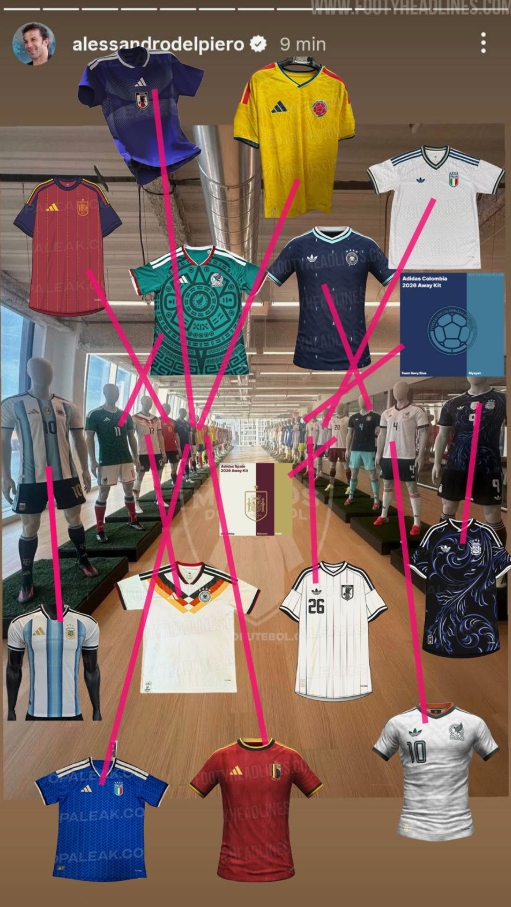 提前泄露?皮耶羅社媒曬阿根廷西班牙等國2026年球衣,很快刪除