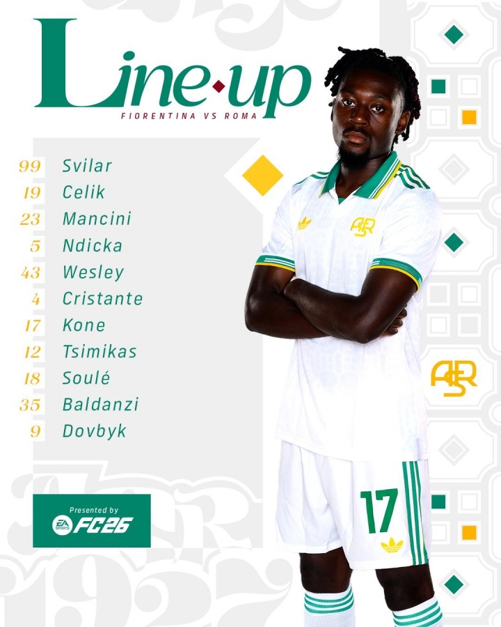 羅馬客戰(zhàn)佛羅倫薩首發(fā):齊米卡斯、克里斯坦特先發(fā),多夫比克出戰(zhàn)