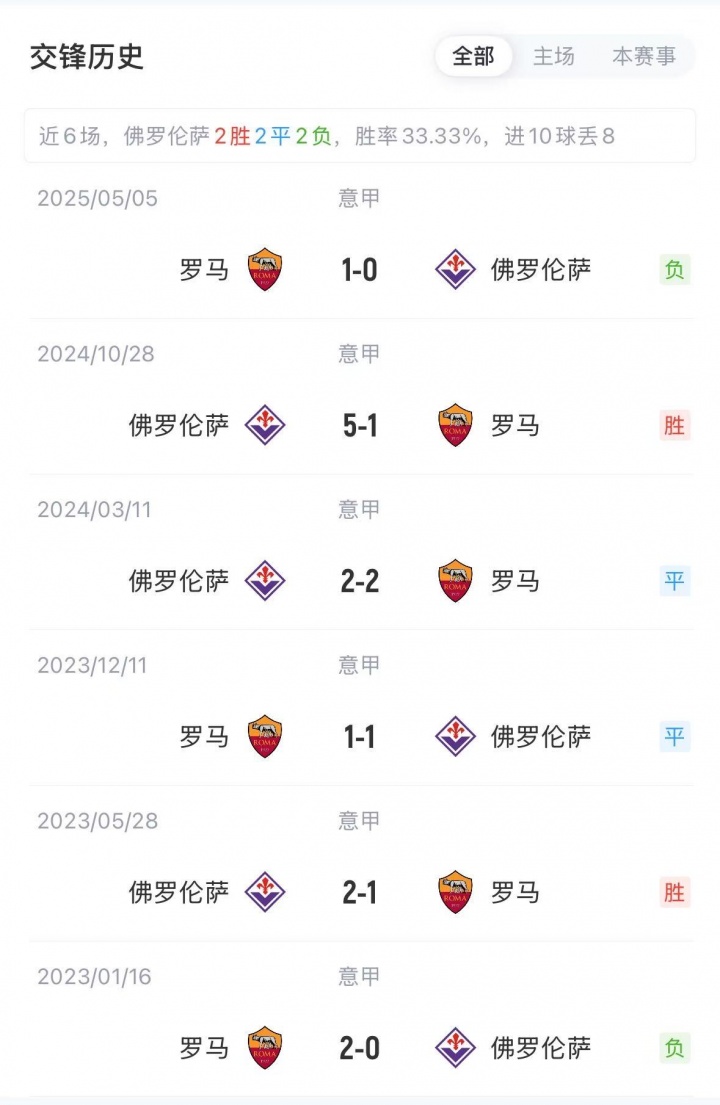 積分榜方面,羅馬4勝1負排在積分榜第三位;佛羅倫薩開局五輪不勝,排名倒數(shù)第四。