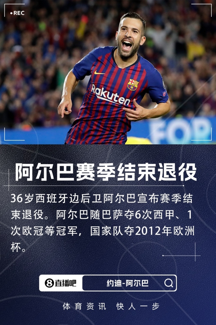 告別!官方:36歲巴薩傳奇后衛(wèi)阿爾巴宣布賽季末退役