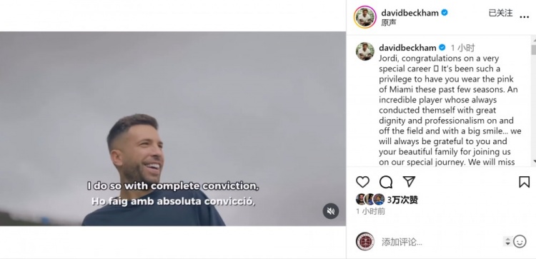貝克漢姆致敬阿爾巴:很榮幸有你為邁阿密效力,我們會想念你