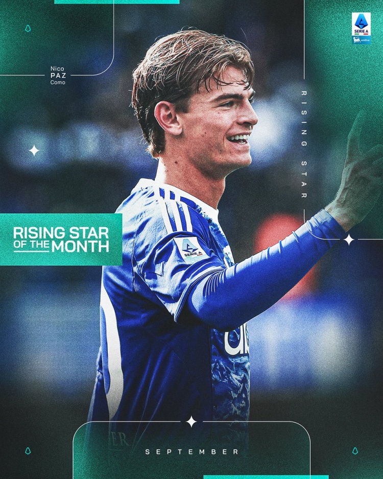 10月8日訊 意甲聯(lián)盟官方宣布,科莫中場帕斯當(dāng)選9月份最佳新星獎。