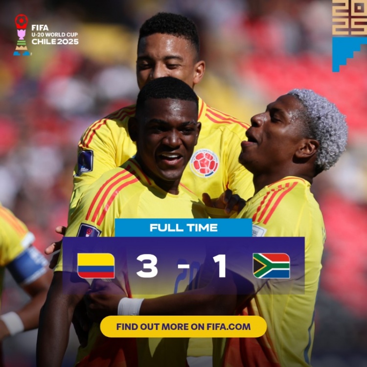 10月9日訊 世青賽1/8決賽,哥倫比亞U20以3-1擊敗南非U20,晉級8強(qiáng)。