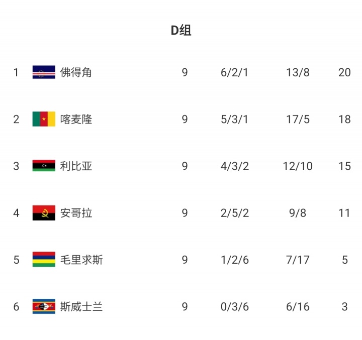 世預(yù)賽僅剩最后一輪,佛得角仍2分領(lǐng)跑,下輪面對小組墊底的斯威士蘭,贏球即可確保隊(duì)史首次晉級世界杯;喀麥隆第2落后2分,但握有7個(gè)凈勝球優(yōu)勢。