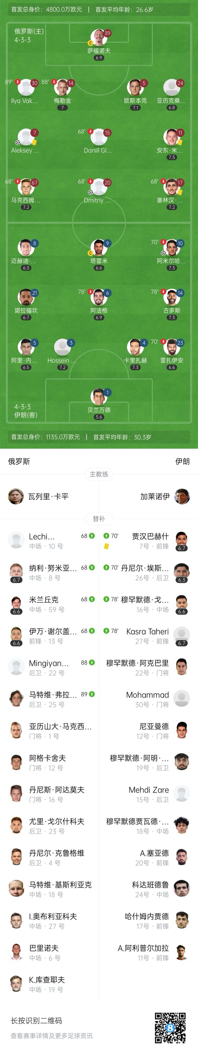 沃羅比約夫、巴特拉科夫?yàn)槎砹_斯破門,伊朗隊(duì)由胡賽恩扎德打進(jìn)1球。
