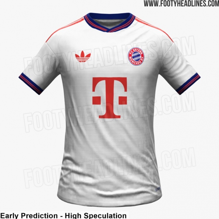 外媒泄露拜仁26/27賽季客場(chǎng)球衣:白色主色調(diào),EV隊(duì)徽回歸