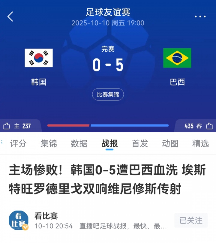 4天前剛剛5-0橫掃韓國隊(duì),巴西隊(duì)今天遭...