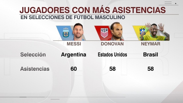 據(jù)ESPN阿根廷統(tǒng)計梅西已經(jīng)在阿根廷隊送出了60次助攻,超越內(nèi)馬爾和多諾萬的58次,成為歷史國家隊助攻王。