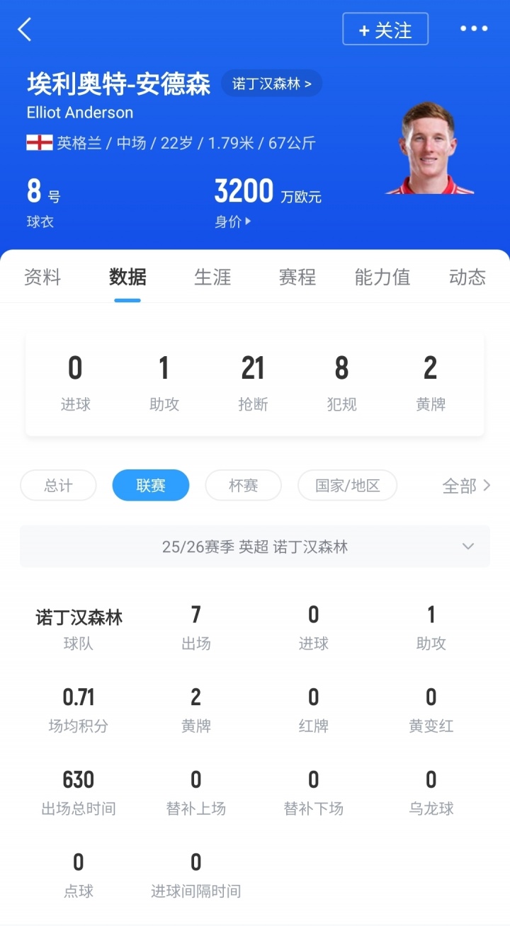 現(xiàn)年22歲的安德森于2024年以3500萬(wàn)鎊從紐卡轉(zhuǎn)會(huì)至諾丁漢森林,如今已成長(zhǎng)為英超最耀眼的新星之一。